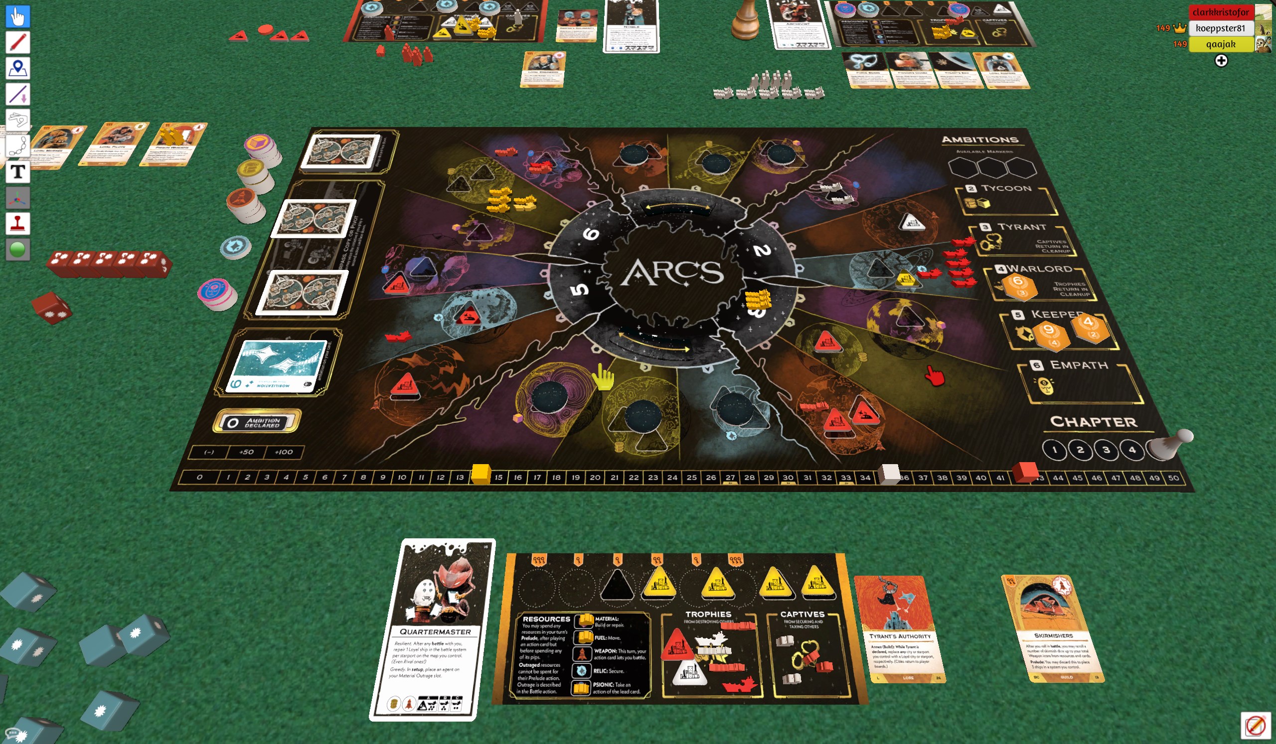 On that last chapter, I declared Ambition for Warlord, and S declared for Keeper twice. But I raided the crap out of him and stole his 3 Relics. One I had to steal back a second time because he raided it away from me. It took 3 Fuel and 3 Weapons to do it. But in the end, I scored Keeper for 9 and 4 Power, Warlord for 6, with 10 bonus because I built all my cities. A massive comeback from a distant 2nd place.